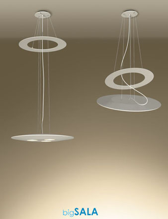 宙に浮かぶUFOのようなサスペンション・ライトの大型タイプ。 P10001と同じく高さが自在で場面に応じて器具を上下させて照らす範囲を広げたり狭めたり、 灯体を少し傾けて灯りを手元に向けたりが可能です。LEDユニットは、3ユニットでP10001の3倍。 しかし、照射範囲が100°と広く広がる光のため直下照度は、P10001程明るくは無く、 広いテーブル面を均一に照らしたい場合等に適しています。